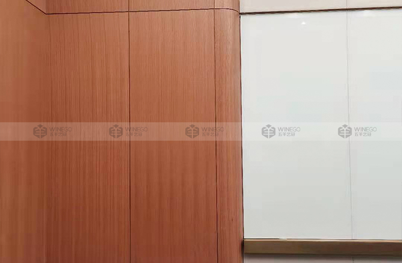 4. 五羊產品超長天然紅橡木飾面、弧形木飾面、木飾面隔斷、藝術布藝吸音板、布藝造型硬包、防火板