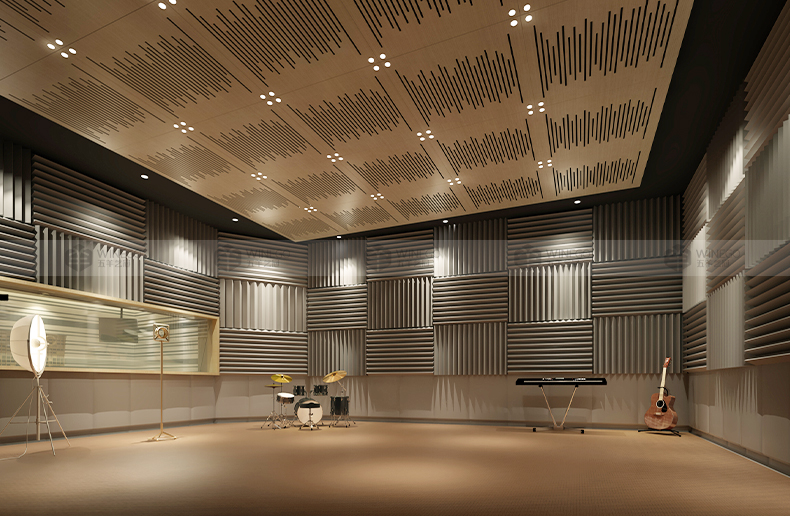 4. 五羊產品槽孔吸音板、孔木吸音板、布藝吸音板、實木通花、木飾面板
