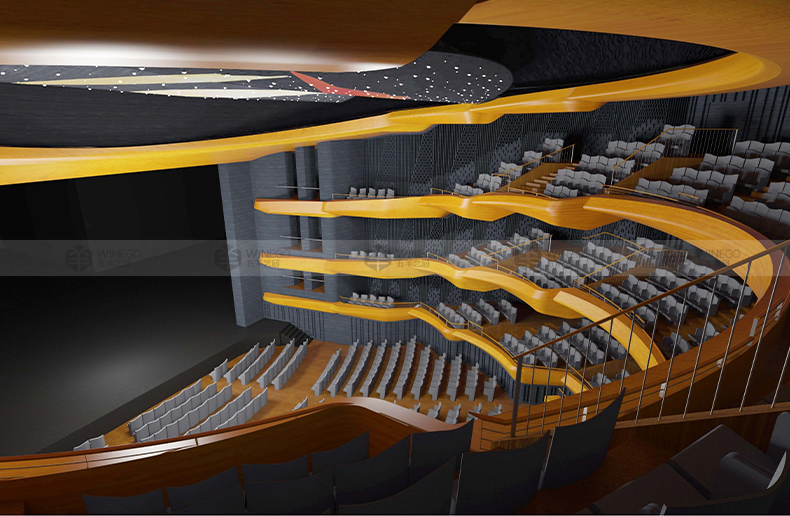 5. 項目概述被譽為“上海音樂地標”的上海音樂學院歌劇院,出自法國普利茲克獎獲得者克里斯蒂安·德·包贊巴克之手。五羊藝冠為此項目提供現場方案設計、深化設計、材料供應、安裝實施聲學裝修整體解決方案。