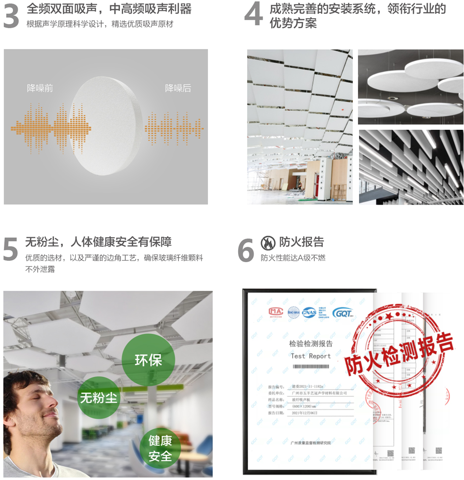 藝術空間吸聲體是一種以高強度玻纖聲學棉為主要材料,擁有多樣化造型和顏色的一種現代天花懸吊裝飾材料。非常適用于具有藝術設計造型安裝需求的空間。它在滿足聲學需求的同時,也實現了空間的靈動和設計感。你可以單獨或者分組安裝,創建你自己的獨特設計。
