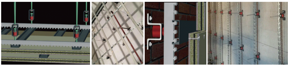 天花減振器和墻面減振器采用高分子阻尼緩振膠,100%原生膠鑄造,耐老化時間及阻尼系數(shù)是翻新膠件的五倍以上,從硬件的品質(zhì)上保證了隔聲效果永久性和安全性。天花減振器是剪切吊頂天花與原基礎(chǔ)樓層天花結(jié)構(gòu)傳聲的有效途徑。墻面減振器適用于墻身增強隔聲結(jié)構(gòu)層安裝固定,在聲波照射面與原基礎(chǔ)墻體間形成隔斷層。