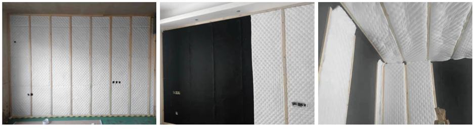 生態(tài)聲學(xué)棉采用PP長纖維、PET短纖維經(jīng)過熔噴混合制作而成,材料環(huán)保無額外添加,人體可直接接觸,適用于家庭及環(huán)保要求高的一些建聲場所。