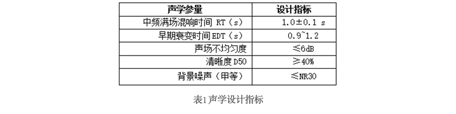 聲學設計原則以電聲演出為主,良好的聲環(huán)境是電聲系統(tǒng)高效發(fā)揮的基礎,要求廳堂建成后具備較高的清晰度,均勻度。
