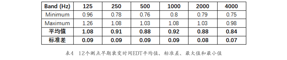 從統(tǒng)計值中可以清楚看出,中頻早期衰變時間EDT 平均值約為0.9 秒。低的EDT值也是較高語言清晰度的有力保證。