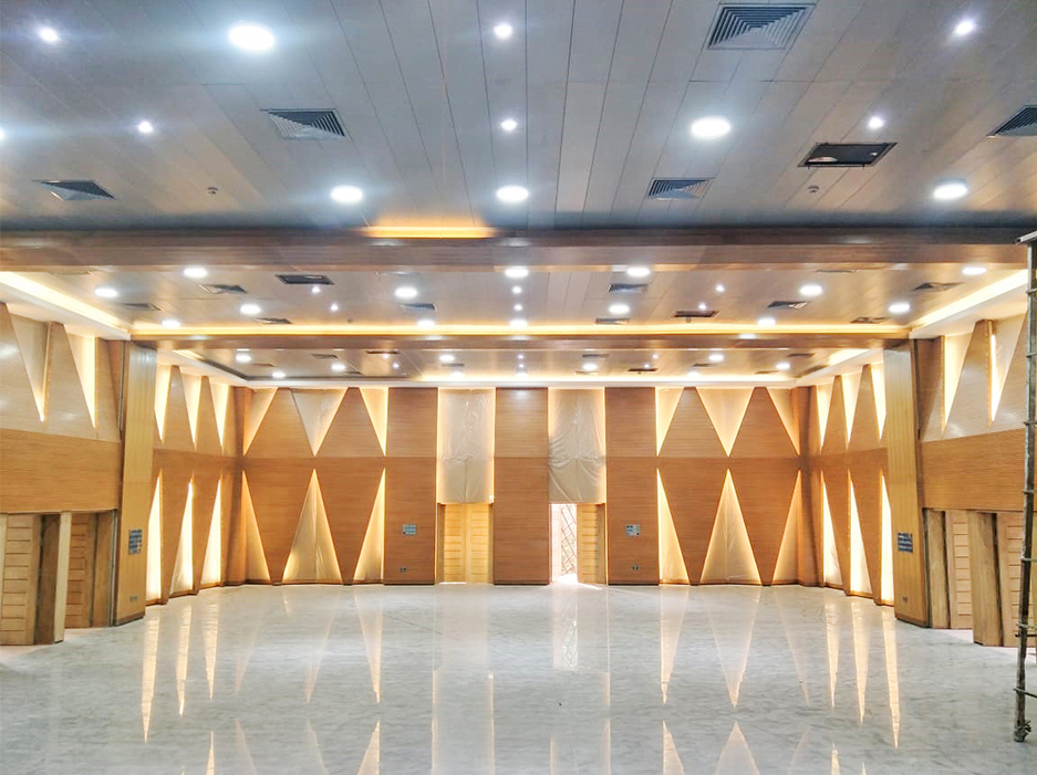 為了防止外界噪聲傳入室內影響多功能廳正常使用,故多功能廳的門窗墻體樓板等建筑構件需滿足隔聲要求。科學的隔聲設計能提高語言私密性,提高會議內容的保密性;防止外界噪聲傳入多功能廳,降低廳堂使用體驗。