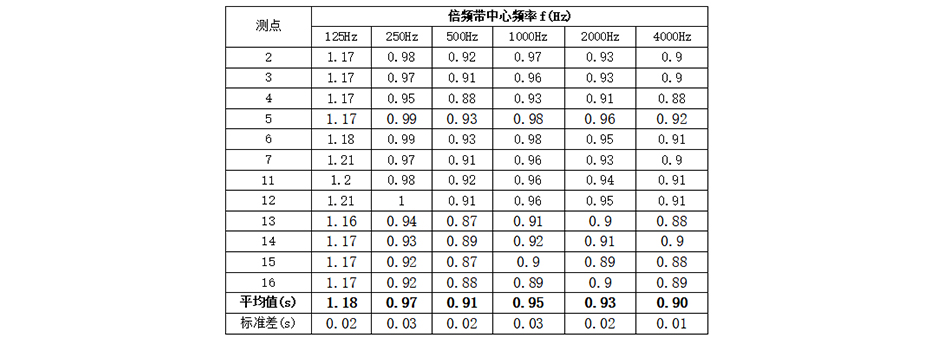 混響時間計算,通常要計算125、250、500、1000、2000和4000 Hz六個頻段的值。