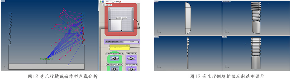利用計算機參數化設計軟件,對觀眾廳體型進一步分析,聲線分析可涵括二維層次開始到三維聲學模型層次,與傳統CAD聲線作圖法相比,具有高效便利,精細確切,分辨率高,形象生動等優點。