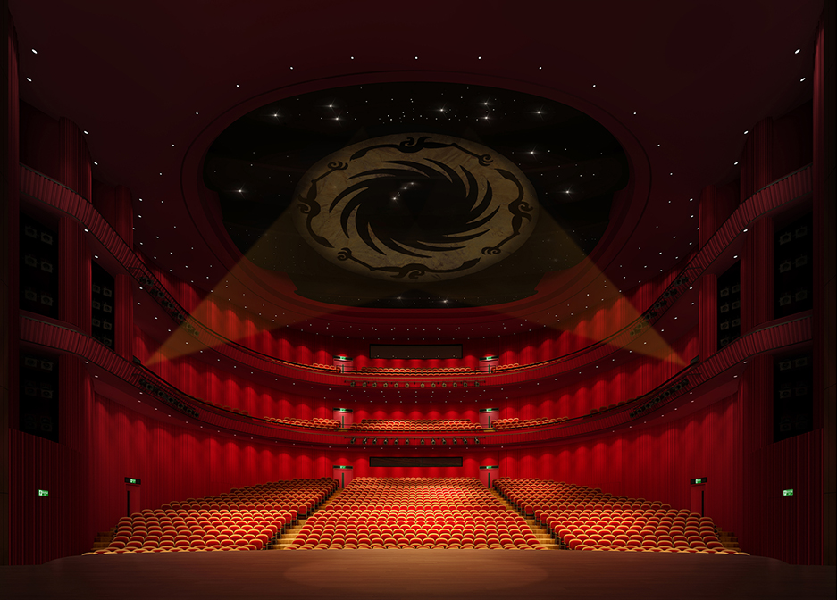 墻面形狀、尺寸、布置的合理設計以及擴散體的設計與布置來滿足。設計合理的吊頂可以為觀眾廳提供豐富而均勻的早期反射聲,舞臺臺口至面光橋之間的大天花,能夠為前中區提供早期反射聲,面光橋后部的天花吊頂能夠為池座中后部及樓座觀眾席提供早期反射聲。而合理設計側墻的造型,能夠使觀眾廳的側向反射聲更豐富,聲場更為擴散,這也有利于加強觀眾席的空間感。而側墻上擴散反射體的設計能夠為觀眾廳提供大量的側向反射聲,這都能改善觀眾廳的空間感并使觀眾廳具有良好的聲場分布均勻度。