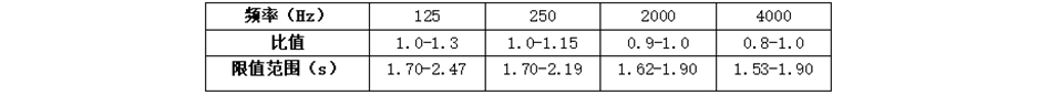 混響時間計算表請參見背后附表。本項目中空場混響時間指座椅已安裝,人員未進場的情況。滿場混響時間指所有椅子均有人員就坐的情況。