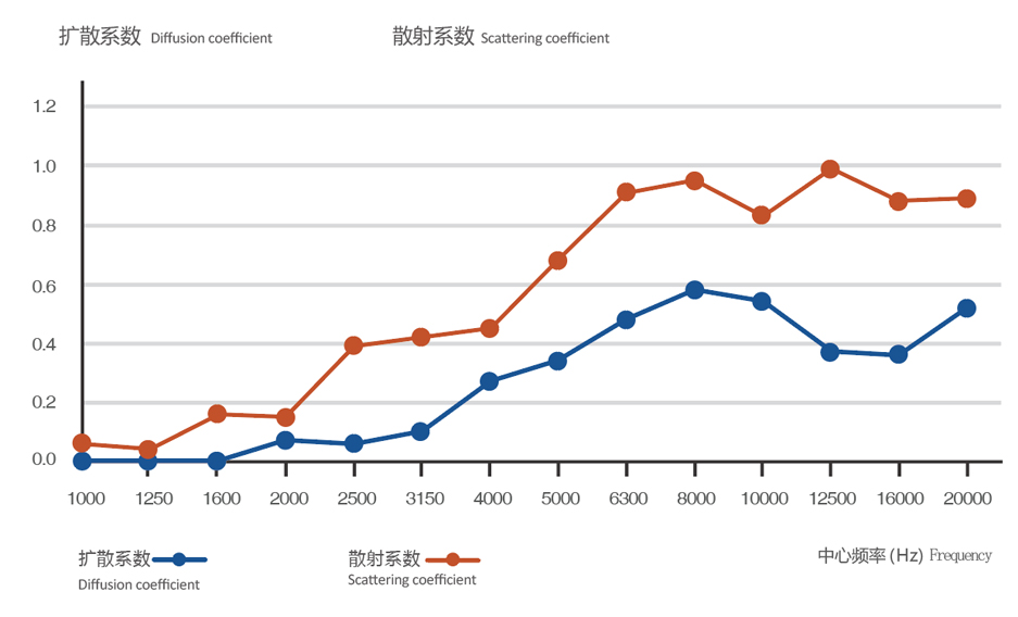 • 聲學特點本產品擴散效果好,改善混響時間顯著。聲學特性達到國家同類材料標準,有效提高環境音質飽滿度,清晰度及立體感